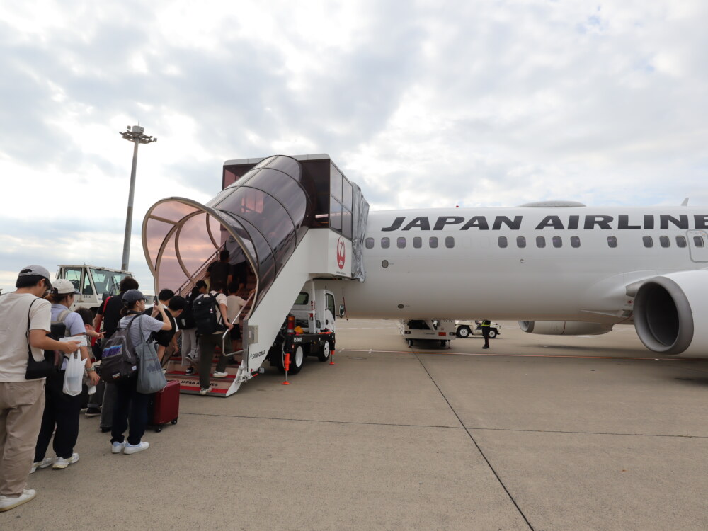 羽田空港から南紀白浜空港へ。乗り場はバスで行く方式。7時40分発で出発の20分前、7時20分が保安検査場締め切り時間。パスで行くため、7時20分から搭乗開始となりました。バスで5分くらいで飛行機へ。