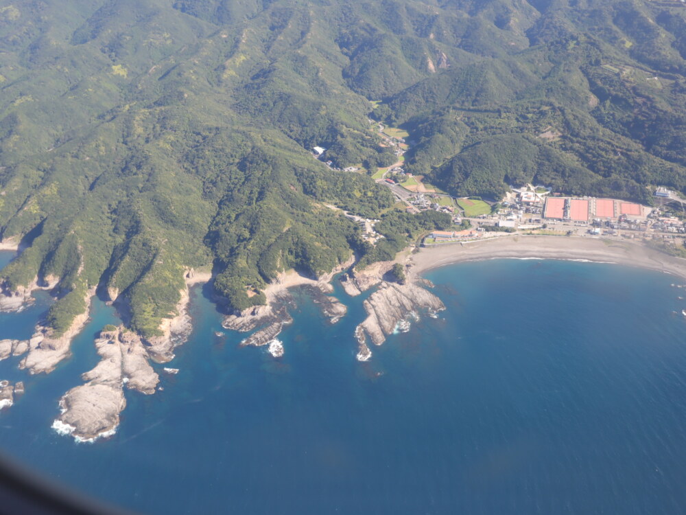 南紀白浜空港付近に来たら、天気も良く海が綺麗♪10分遅れの9時に無事到着。50分だからトイレが近い私でも、ギリギリトイレも行かずに大丈夫だった。