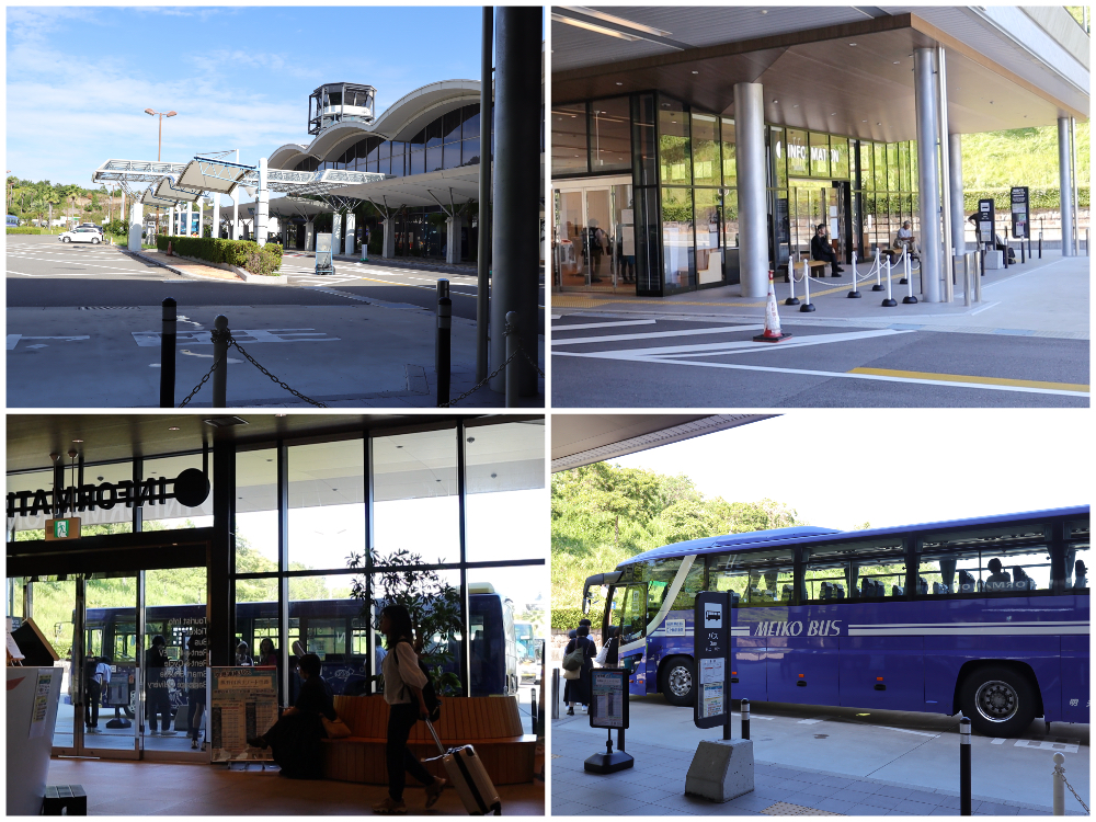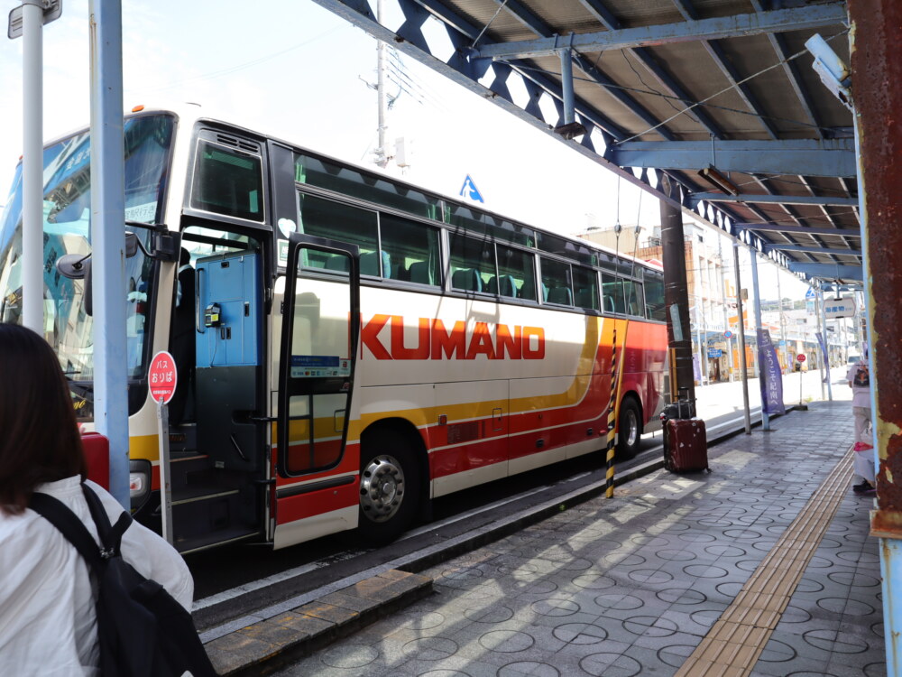 空港を出て正面にバスターミナルがあって、そこでバスチケットも買えるみたい。ここでリムジンバスに乗ります。南紀白浜リゾート空港9時半発の新宮行きで那智勝浦駅まで行きます。10分到着が遅れたけど、空港が小さいので余裕です。