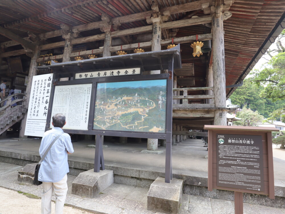 熊野那智大社の隣にはお寺「那智山 青岸渡寺(せいがんとじ)」があって、これが世界遺産で安土桃山時代の1590年に秀吉が再建した、紀南地方で最も古い建造物なんだって。なんだか広そう。。西国三十三所の第一番札所でもある。こんな山奥に大変だな。