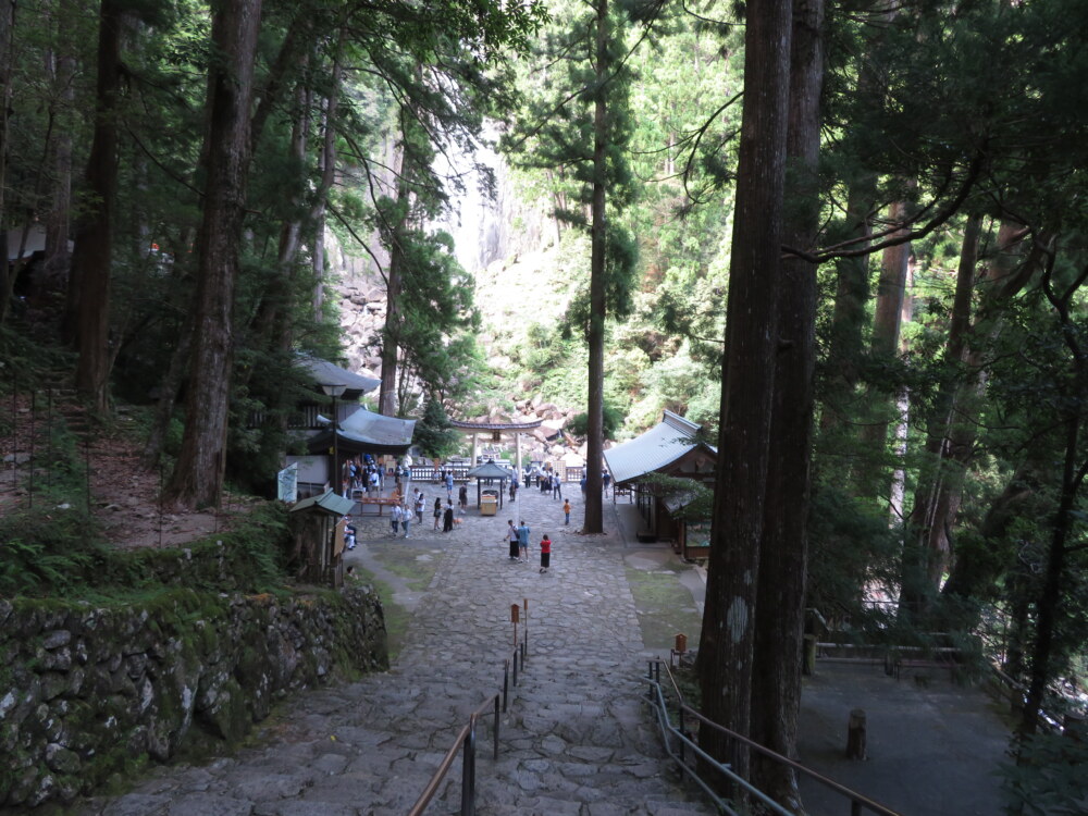 飛龍神社の入り口から続くこの階段を降りると正面に那智の滝があった。が、この階段が結構きつい。しかもちゃんと舗装された階段ではないため、凸凹斜めになったりと足が悪い人はかなり大変そう。これは絶対若いうちがいいかも。行けなくはないけどね。ベビーカーとかも無理なので、ちびっこ抱えるの大変そう。
