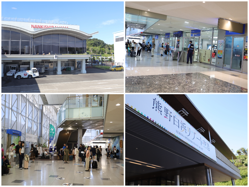 南紀白浜空港に着陸する前、機内アナウンスがはっきり聞こえなかったんだけど、なんか南紀白浜空港って着陸が難しいらしく、荷物が飛んでいったりするから気をつけてねって感じのアナウンス。