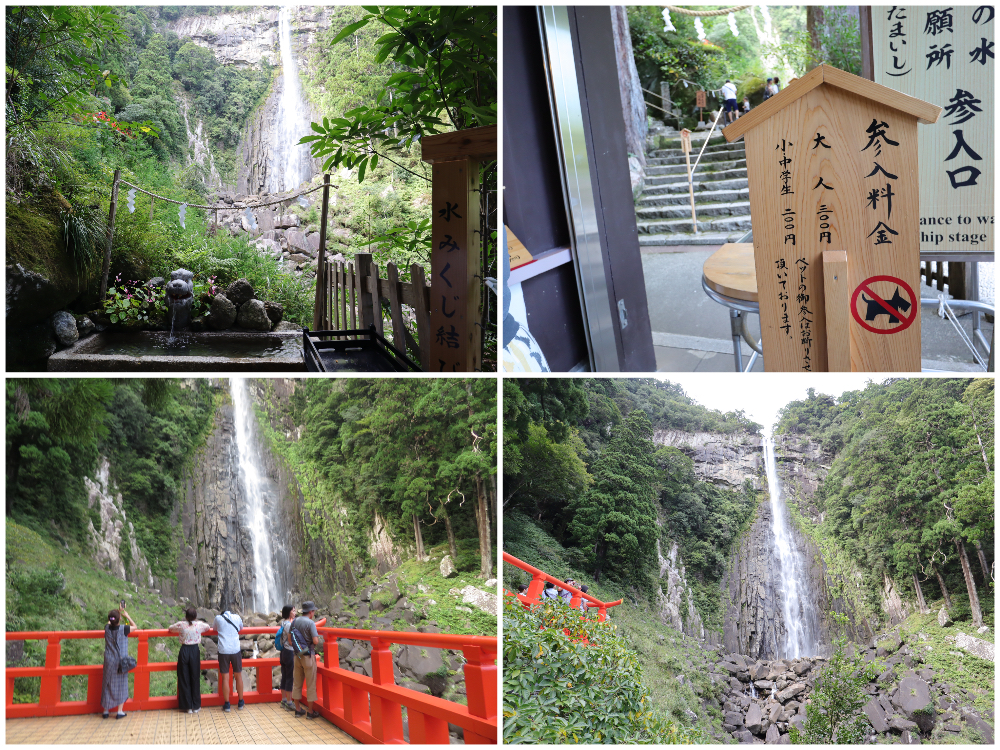 那智の滝前の鳥居横から、さらに滝に近づけるところがあってそれは入場300円/人。さらに階段を登るので車椅子とかでは行けない。やっぱり近付いただけあって迫力がやや増す感じ。300円なので足腰悪くない人はせっかくだから行った方がいいかもしれない。という程度かな。