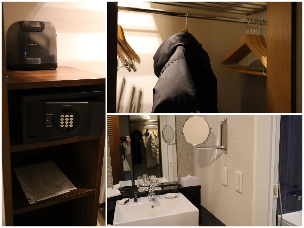 荷物置きもあって、テレビも大きい。写真ではわからないけど廊下の壁には大きい全身鏡。ゴミ箱もたくさん。加湿器とボディタオルがあれば完璧だったけど。