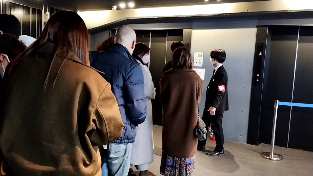 中に入ると日時指定の人はエレベータへ。でもここで5分くらい待ちました。
