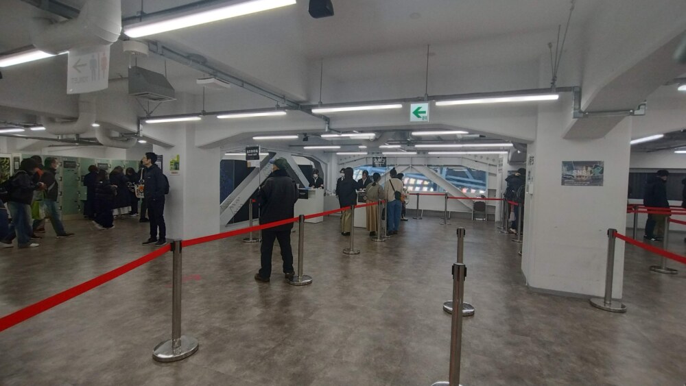 すると入場口があって、ここでまた日時指定した画面と予約したチケットを見せると入れるんだけど、、ここから先はトイレが無いので大丈夫か?と聞かれるので、トイレに行く。するとそこでも男性は並んでなかったけど、女性は結構並んでいて5分くらいかかったかな。全員がトイレに行って揃ったら、初めてチケットを見せて入ります。なので、トイレが近い人でなければ、天王洲アイル駅で事前にトイレに行っておいて、ボンタンアメか大福を事前に食べて行ったほうがいいかも?